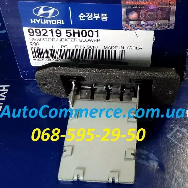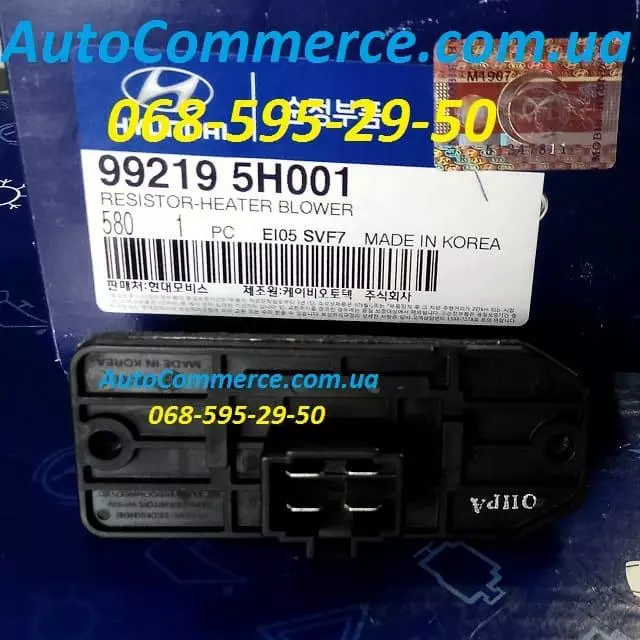 99219-5H001, 992195H001 Резистор опалювача салону (встановлюється на Hyundai Truck (County, Hyundai HD65, HD72, HD78) з двигуном D4AL (3.3L) и DD4DD, D4DB Euro-2, Euro-3 (3.9L)