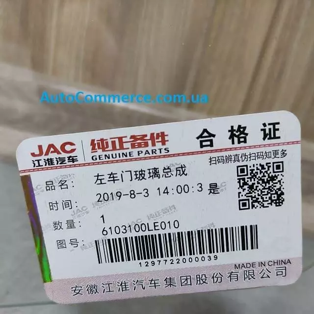 Купити скло лівою дверцята на Jac N56 Джак (6103100LE010) можна як за готівку під час отримання товару так і за безналичним розрахунком!